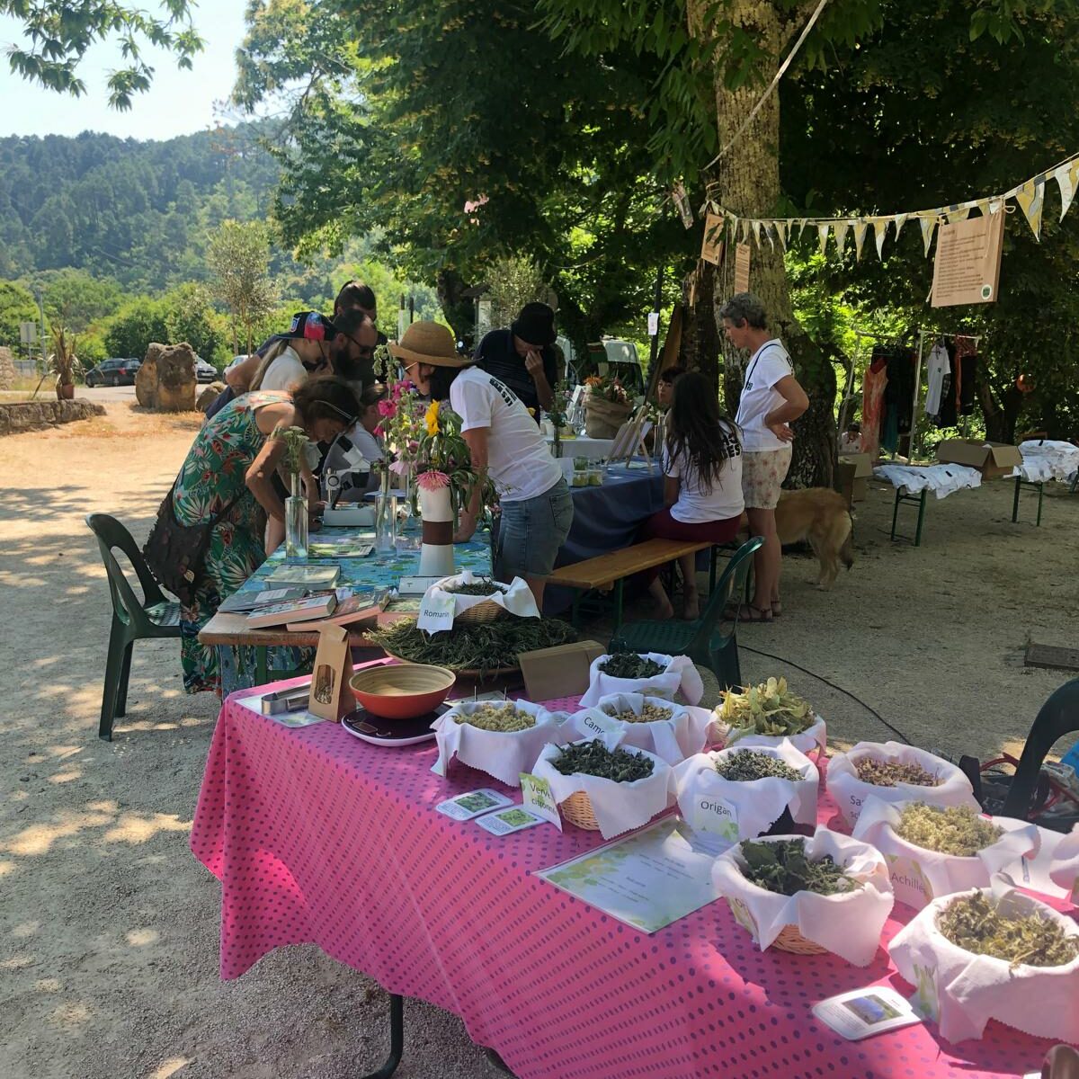 Tisser des liens entre nous et aussi de Nous à la Nature. Célébrer l’esprit de fête, la connaissance, la joie, la culture, les jeux dans une ambiance de partage laissant place à chacun de découvrir toute la palette de sa curiosité, de ses talents et de ses papilles.